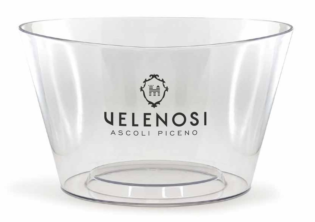 Spumantiera in metacrilato trasparente per tenere in fresco fino a 6 bottiglie. Formato diam. 45,5×29 H 24,5